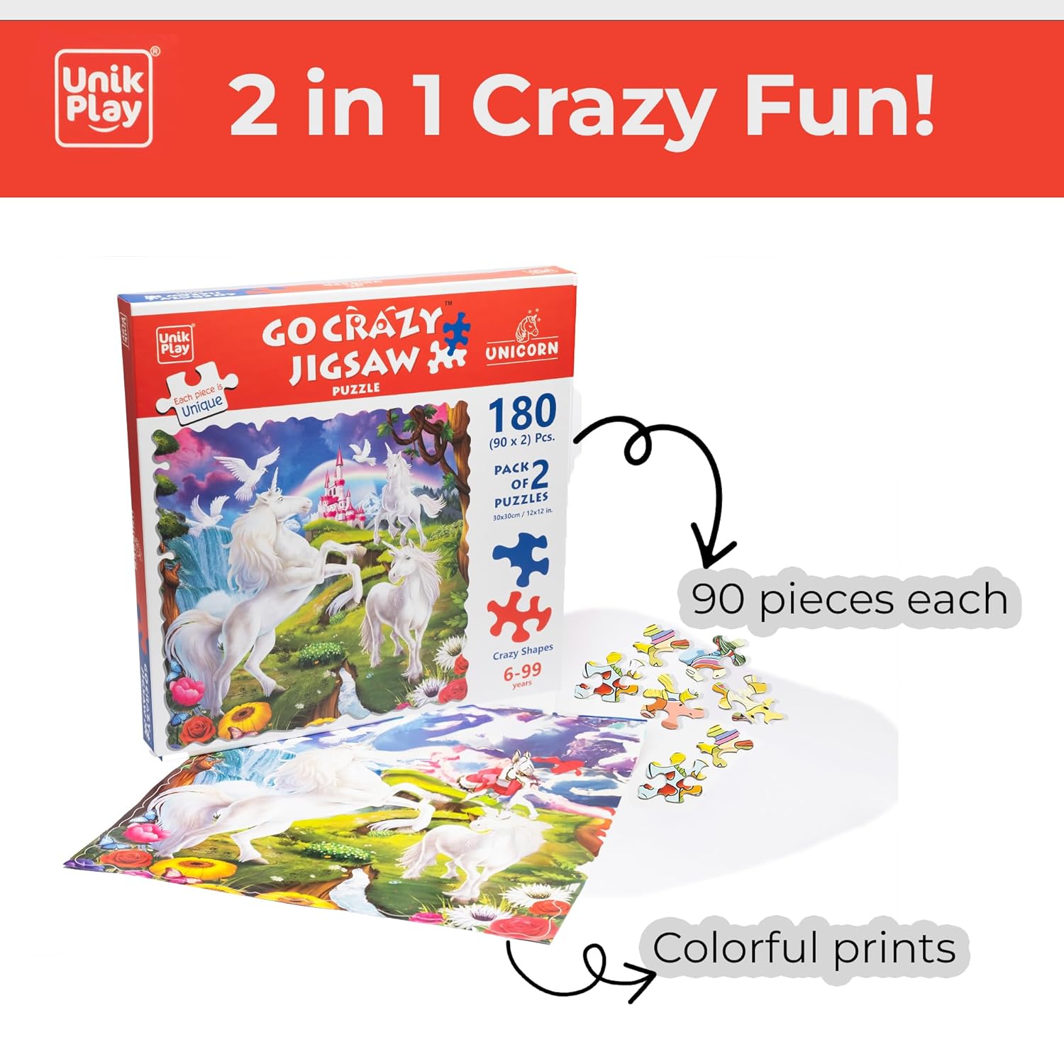 Unik Play Go Crazy Jigsaw Puzzle for Kids and Adults | Attractive Cartoon Print Puzzle with 2 Puzzle Trays for Age 6 to 99 Years-90 Pcs-(Unicorn)