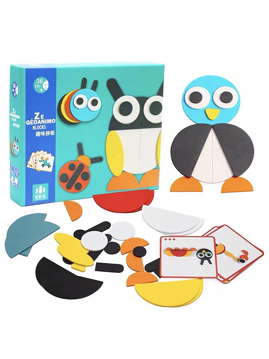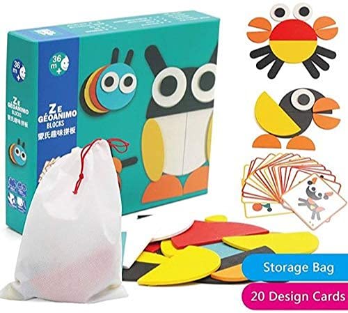 Wooden Animal Puzzle Pattern Blocks with 20 Activity Cards Montessori Educational Learning Toy Game,Geometric Shape Blocks Pattern(Geometric Puzzle)